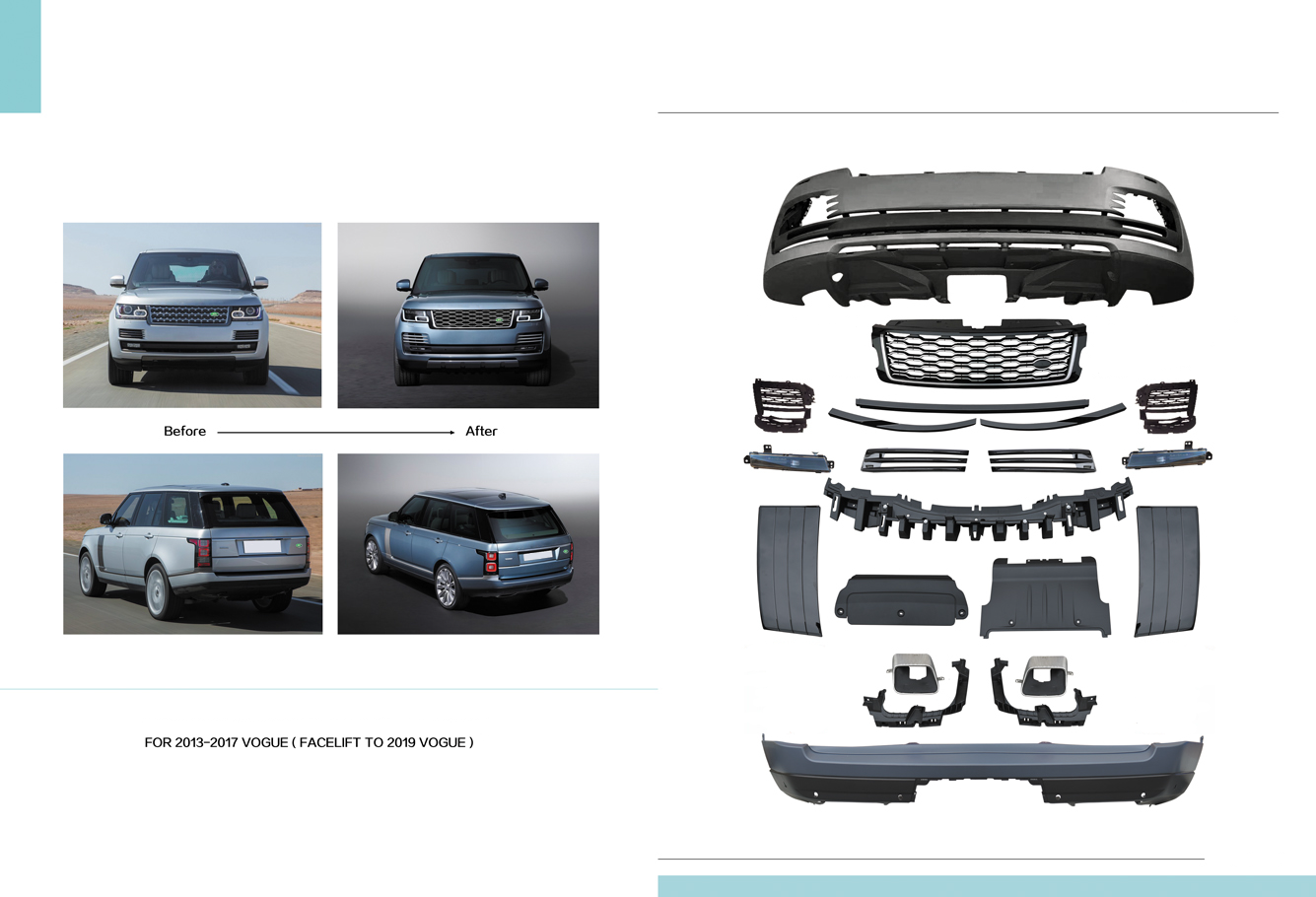 Рестайл комплект Range Rover restyle 2017 – полный набор для тюнинга вашего автомобиля. Покупка комплекта для стайлинга Рендж Ровер – отличный способ недорого преображения «железного коня». В набор входит: